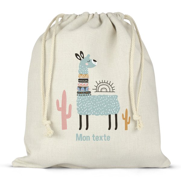 Una graziosa borsa per contenitore porta-pranzo, con motivo: Lama in tela di cotone, per trasportare i contenitori porta-pranzo/ portamerende.