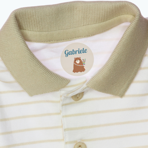 Contrassegnare i vestiti e gli accessori in tessuto dei propri figli diventa facile e rapido grazie alle etichette termoadesive rotonde.